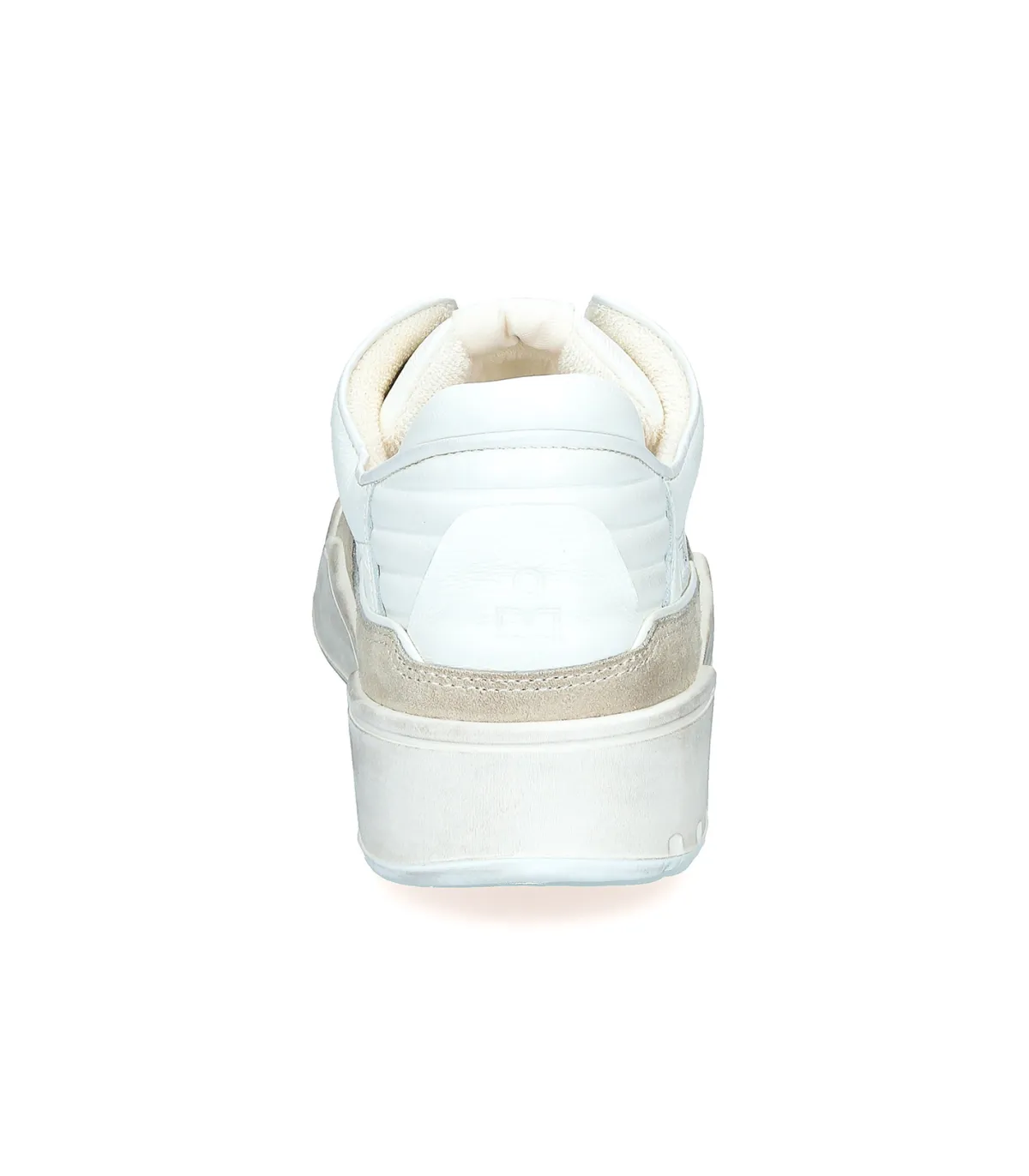Optez pour des chaussures au style streetwear avec les baskets pour homme Emreeh White/Suede de la maison parisienne Isabel Marant. La marque prend clairement un tournant sportswear et plus décontracté sur sa ligne homme et le prouve de nouveau sur cette basket en cuir lisse blanc et empiècement en suédine beige. Des perforations en lignes, du matelassage sur le talon et une semelle épaisse renforcent cet esprit. Effet usé volontaire.