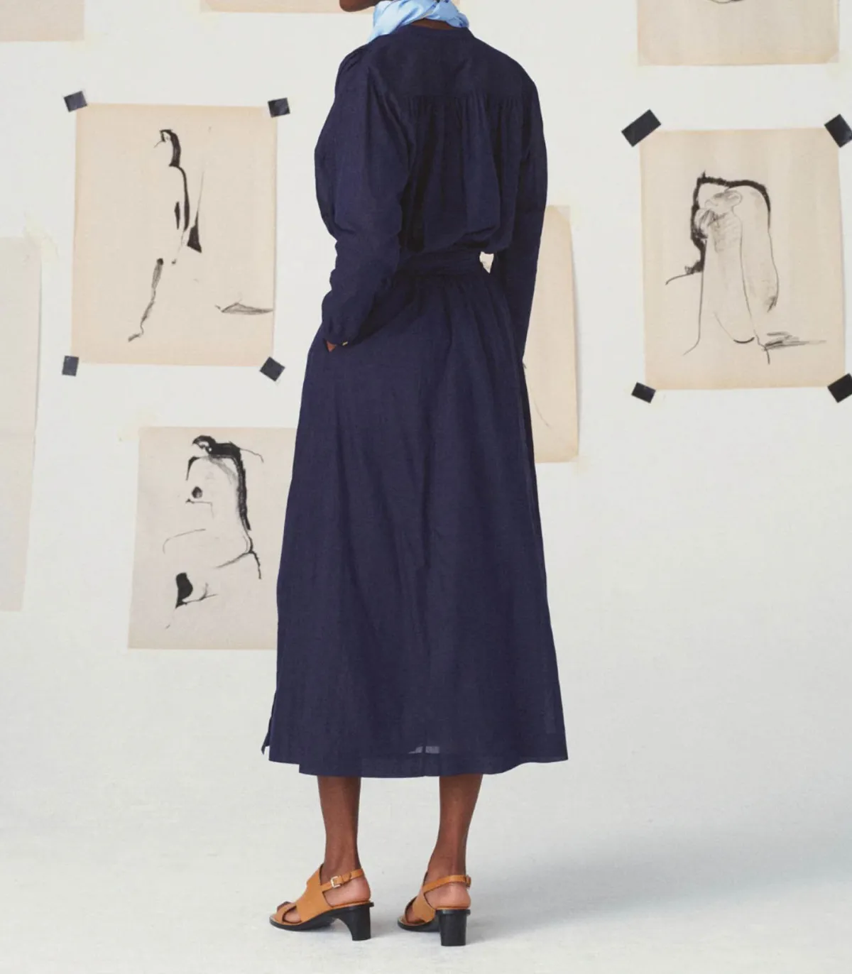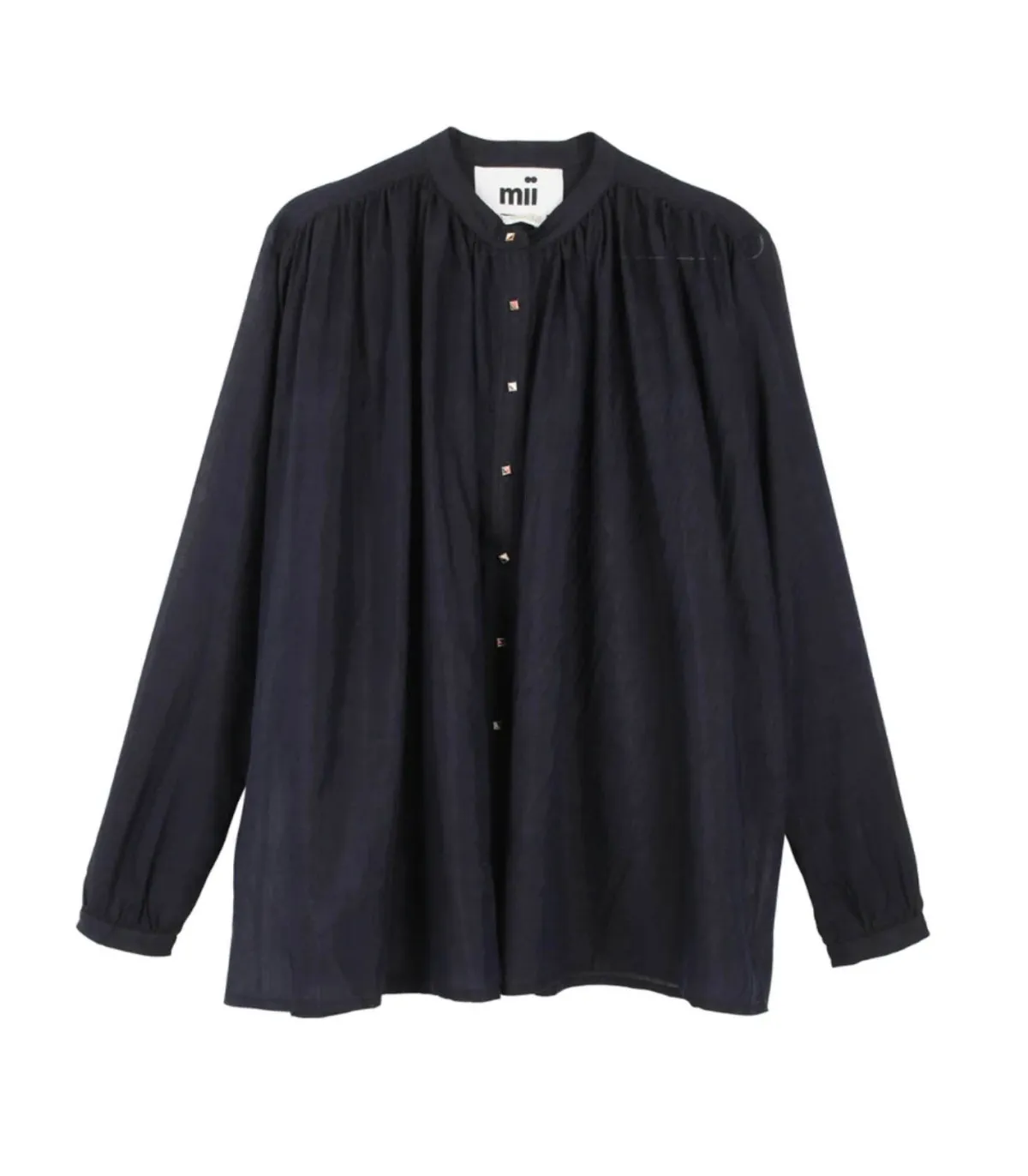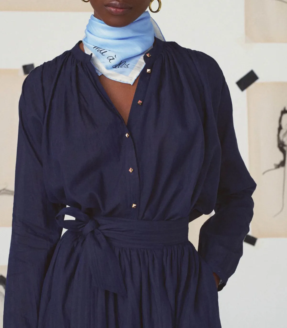 Elle existe en coloris bleu-gris et marine, deux variantes qui soulignent sa texture chatoyante tout en lui conférant une allure à la fois élégante et facile à assortir.