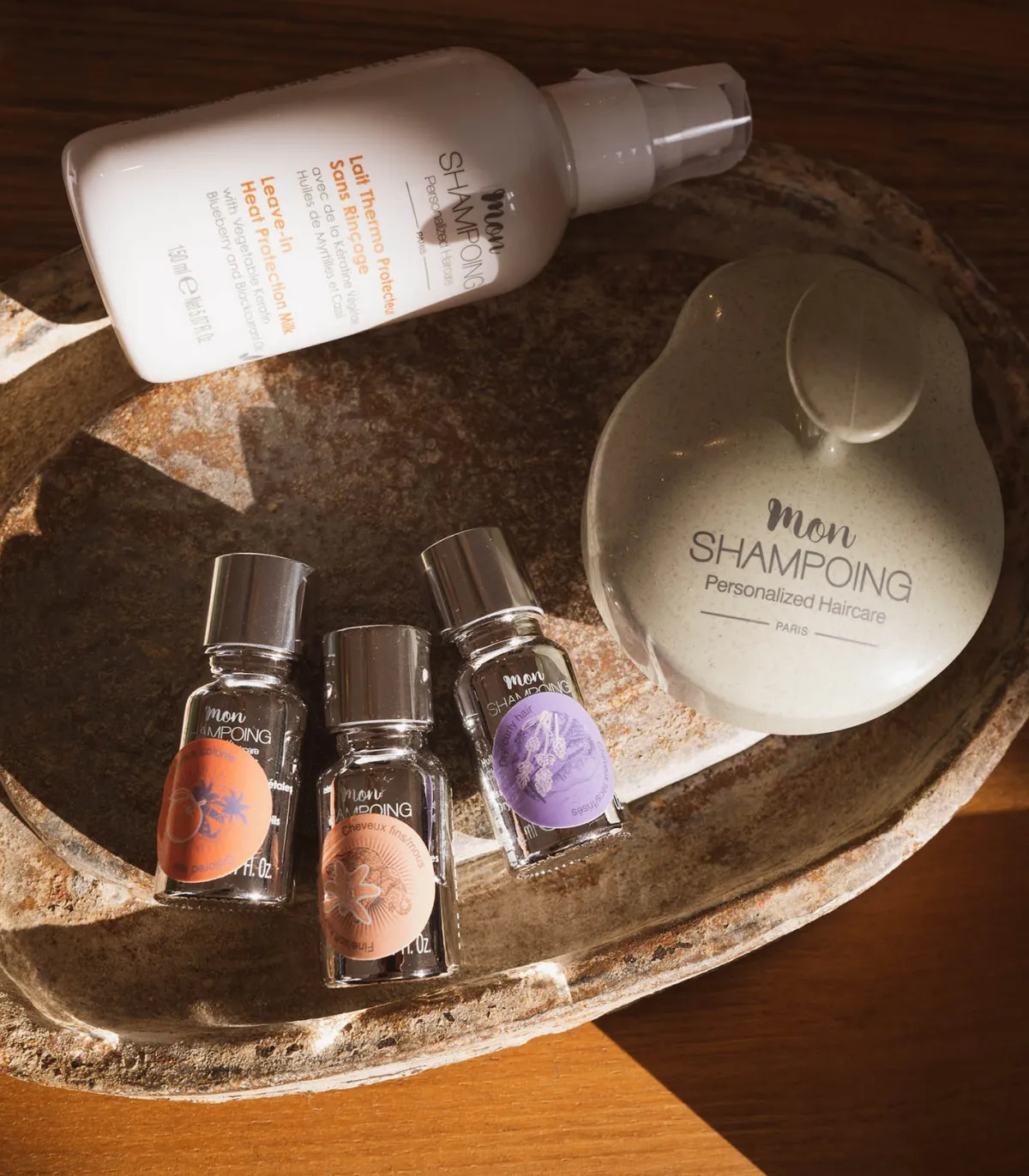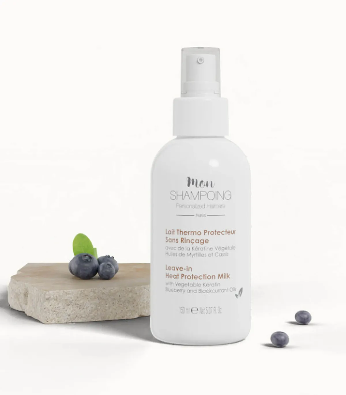 Lait thermo protecteur sans rinçage 150ml de la marque Mon Shampoing. Conçu pour envelopper la fibre capillaire et la préserver des agressions extérieures ainsi que de la chaleur des appareil de coiffage. Ce spray permet de restaurer d’hydratation naturelle des cheveux, de réduire les frisottis, d’hydrater et de protéger les cheveux.