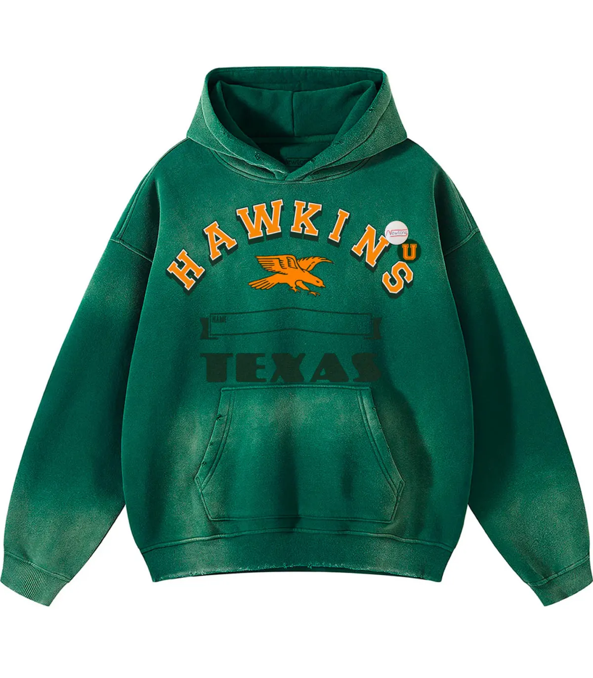 Hoodie Skyler Washington Vintage Forest signé Newtone. Dans un esprit vintage assumé, ce hoodie oversized en coton se pare d’une teinte verte foncée délavée façon tie & dye et d’un imprimé XXL sur le devant du corps façon varsity dans un coloris orange contrastant et une poche kangourou.