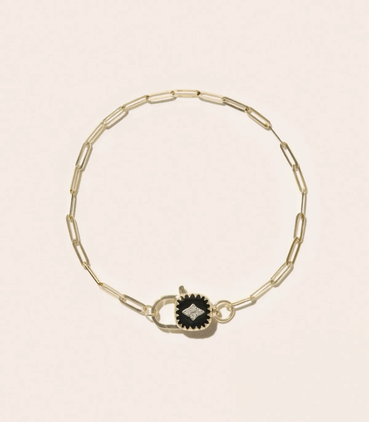 Bracelet Ginger Noir signé Pascale Monvoisin. Cette collection revisite le dessin emblématique de la collection Pierrot, mêlant l’allure vintage du bijou à une chaîne plus contemporaine. Le fermoir, transformé en un cadenas minimaliste, devient un détail design et fonctionnel, symbole de liens à réinventer.