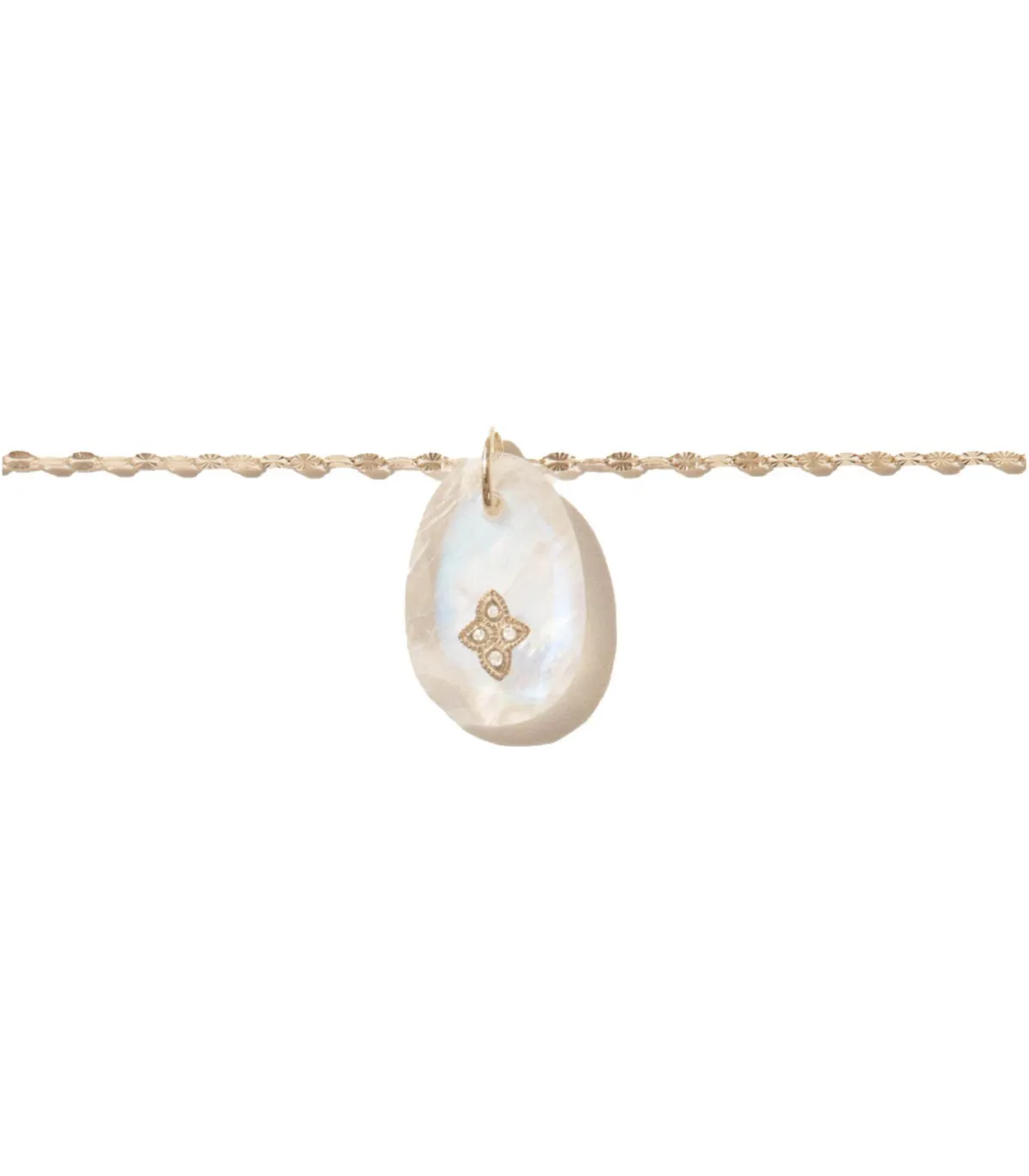 Le collier GAIA N°1 incarne l’élégance bohème chère à Pascale Monvoisin. Son pendentif organique mêle la douceur laiteuse de la pierre de lune à l’éclat discret d’un diamant, créant un contraste délicat et poétique. Suspendu à une fine chaîne en or jaune, il évoque un bijou ancien, à la fois précieux et facile à vivre. Un talisman moderne au charme brut et raffiné, pensé pour celles qui aiment les bijoux singuliers, porteurs d’âme.
