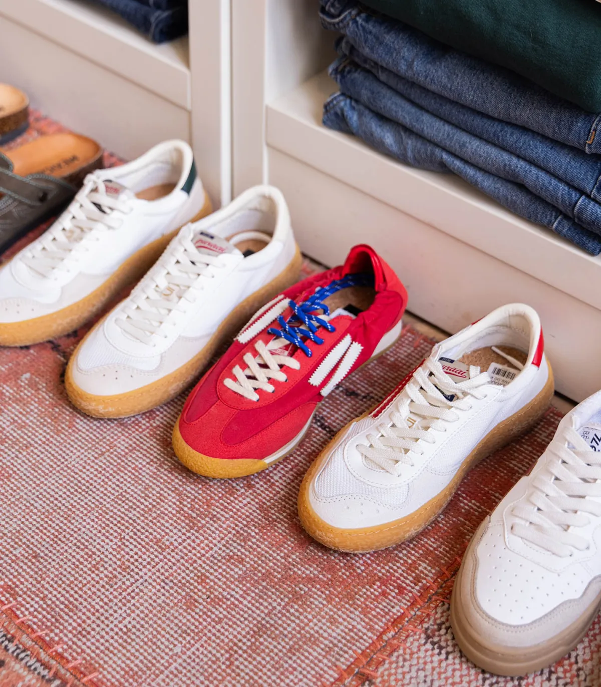Semelle beige et blanche reconnaissable d’un univers rétro.