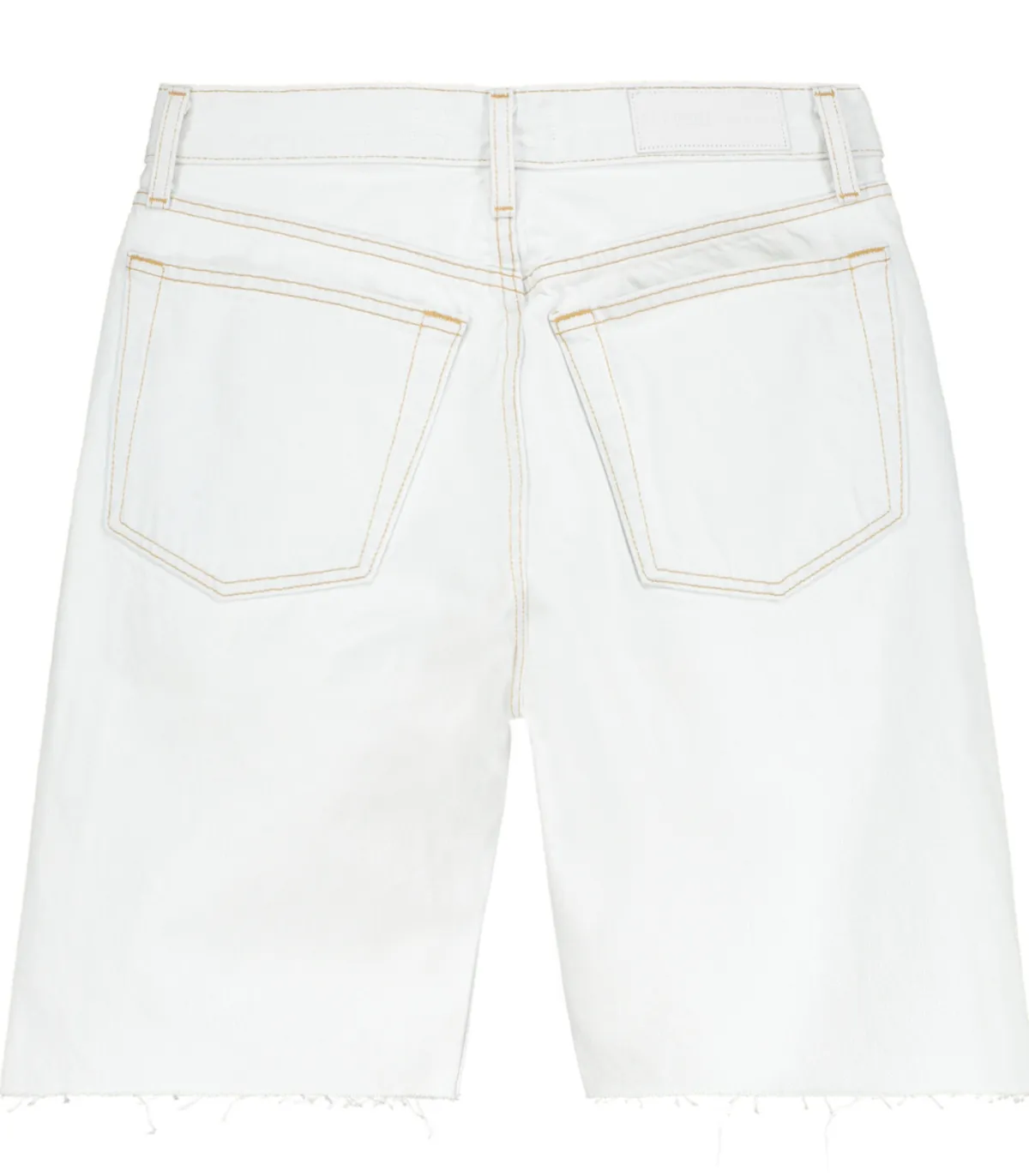 Short Re/Done en denim décoloré blanc de la gamme Re/Done Originals, modèle “80s Long Short”. Bords francs. Coutures contrastantes. Une réinterprétation de l’iconique jean à 5 poches, qui arrive juste au-dessus des genoux, dans une coupe slim ajustée. Braguette boutonnée.