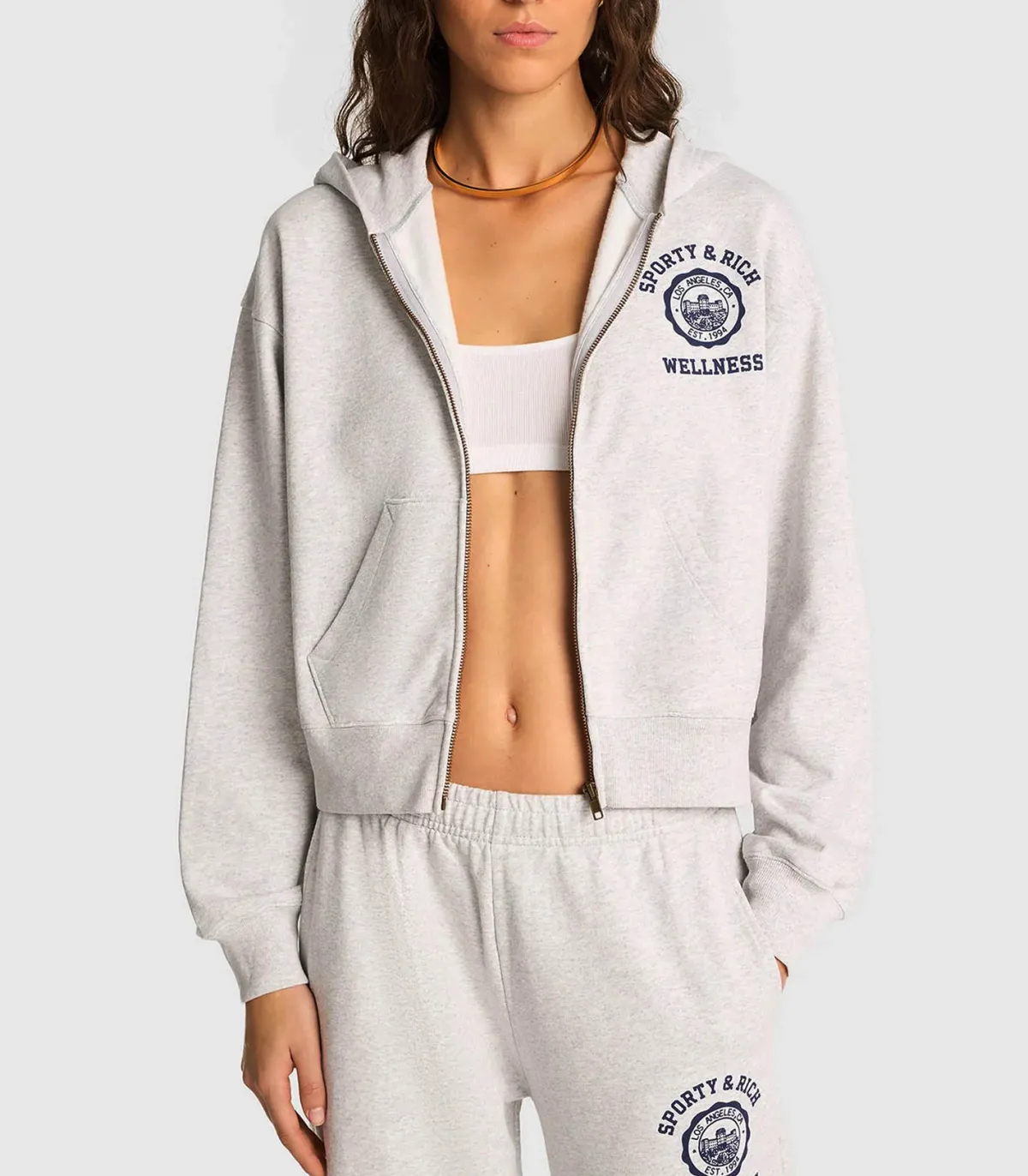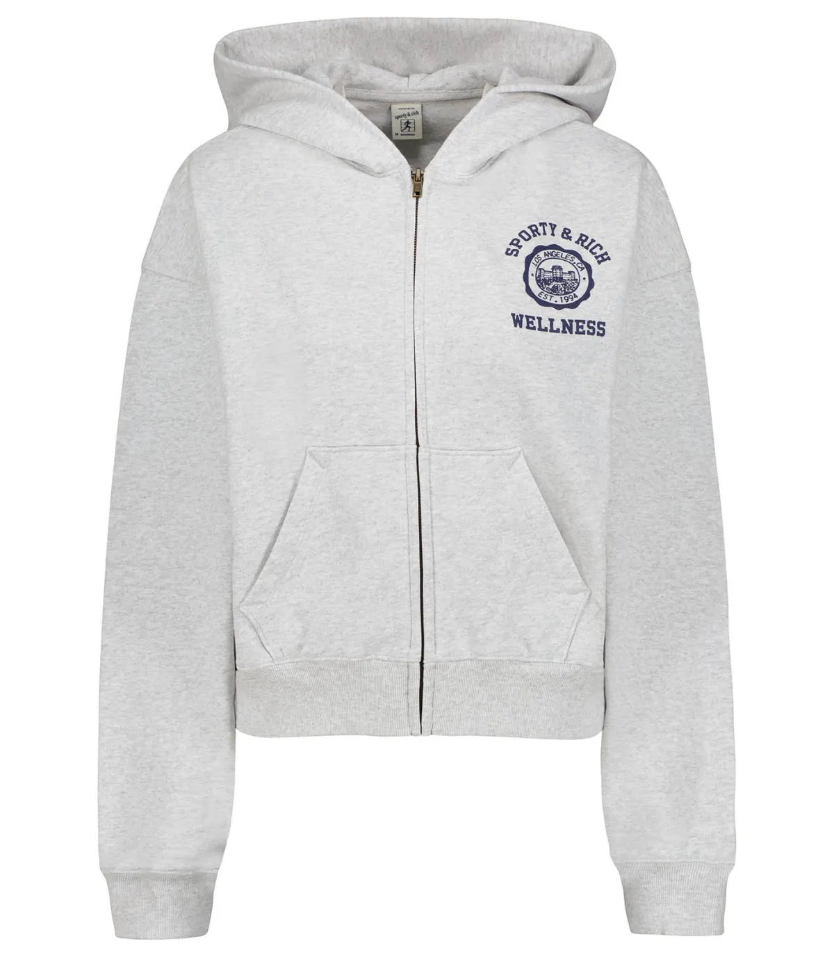 Sporty & Rich Hoodie Emblem Cropped Zipped Heather Grey*Femme Mailles & Sweats