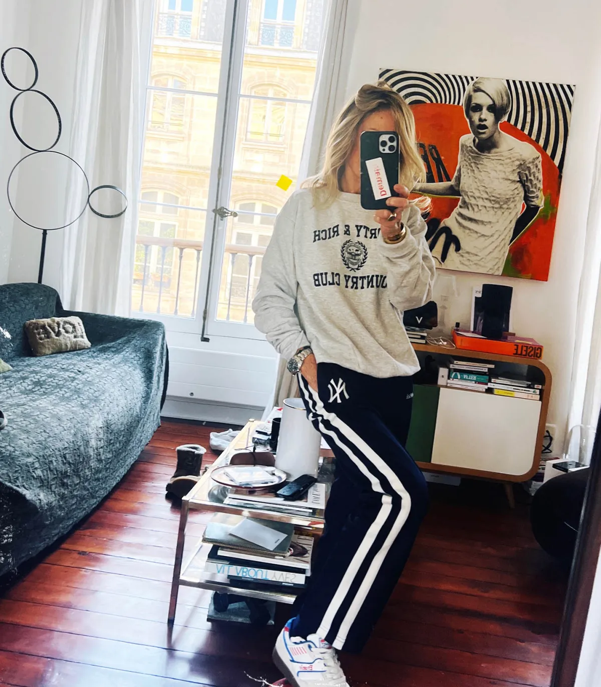 - Broderies « NY » et « Sporty & Rich » sur le haut des cuisses en blanc