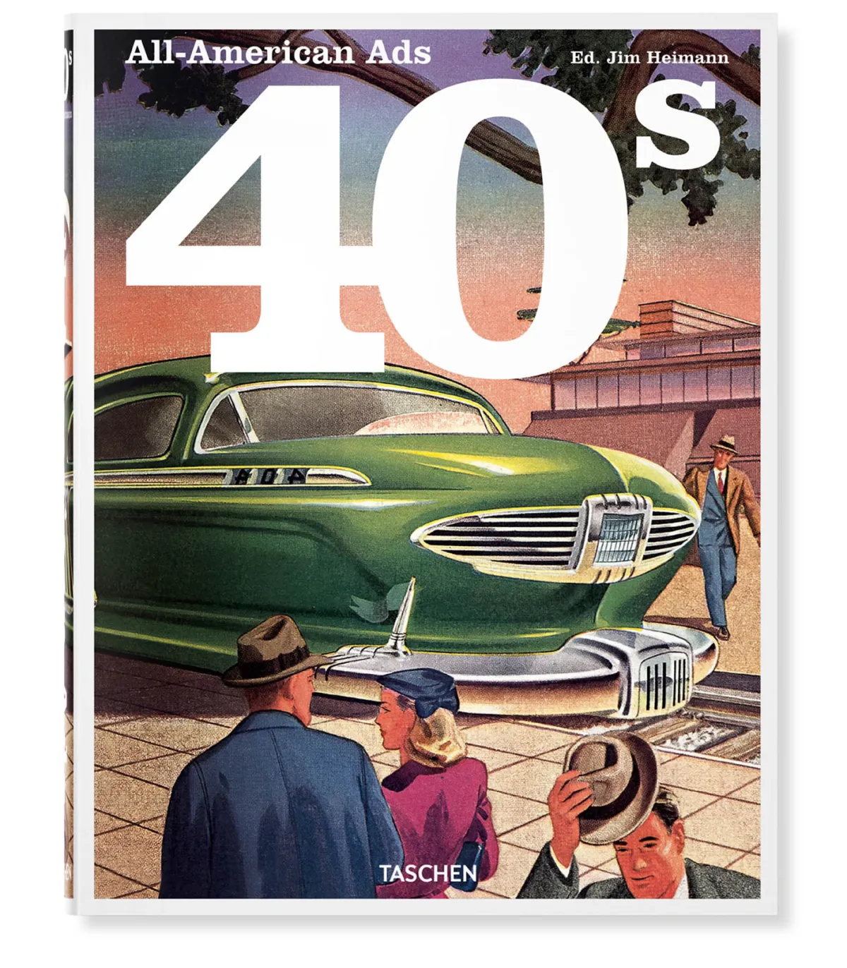 Livre All-American Ads of the 40s aux éditions Taschen. La fascinante compilation de publicités que renferme cet ouvrage nous plonge dans la nostalgie d’une époque révolue. Ces campagnes publicitaires omniprésentes ont imprégné une époque de consumérisme en plein essor, touchant tous les aspects de la vie, de la mode à l’alimentation, en passant par les produits de beauté et les boissons.