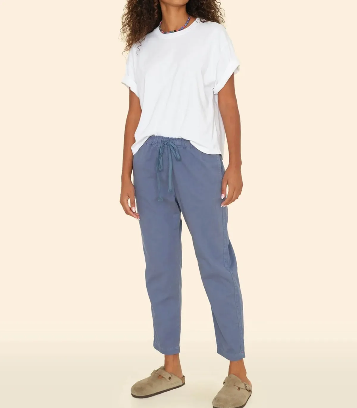 Pantalon Rex Blue Storm signé Xirena. Avec son tissu en sergé de coton délavé vintage, ce pantalon se prête bien à un look workwear. Associez-le avec une chemise ou une veste de travail pour un style résolument tendance. Des baskets complèteront parfaitement ce style. Ce modèle facile à enfiler se distingue par son cordon de serrage réglable à la taille, garantissant un ajustement parfait et un confort optimal.
